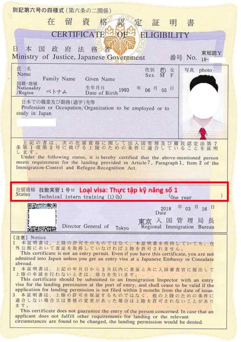 Các loại Visa Thực tập sinh kỹ năng Nhật Bản